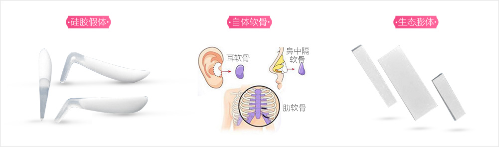 手術(shù)材料:假體+自體組織材料(自體耳軟骨,鼻中隔軟骨,自體肋軟骨)